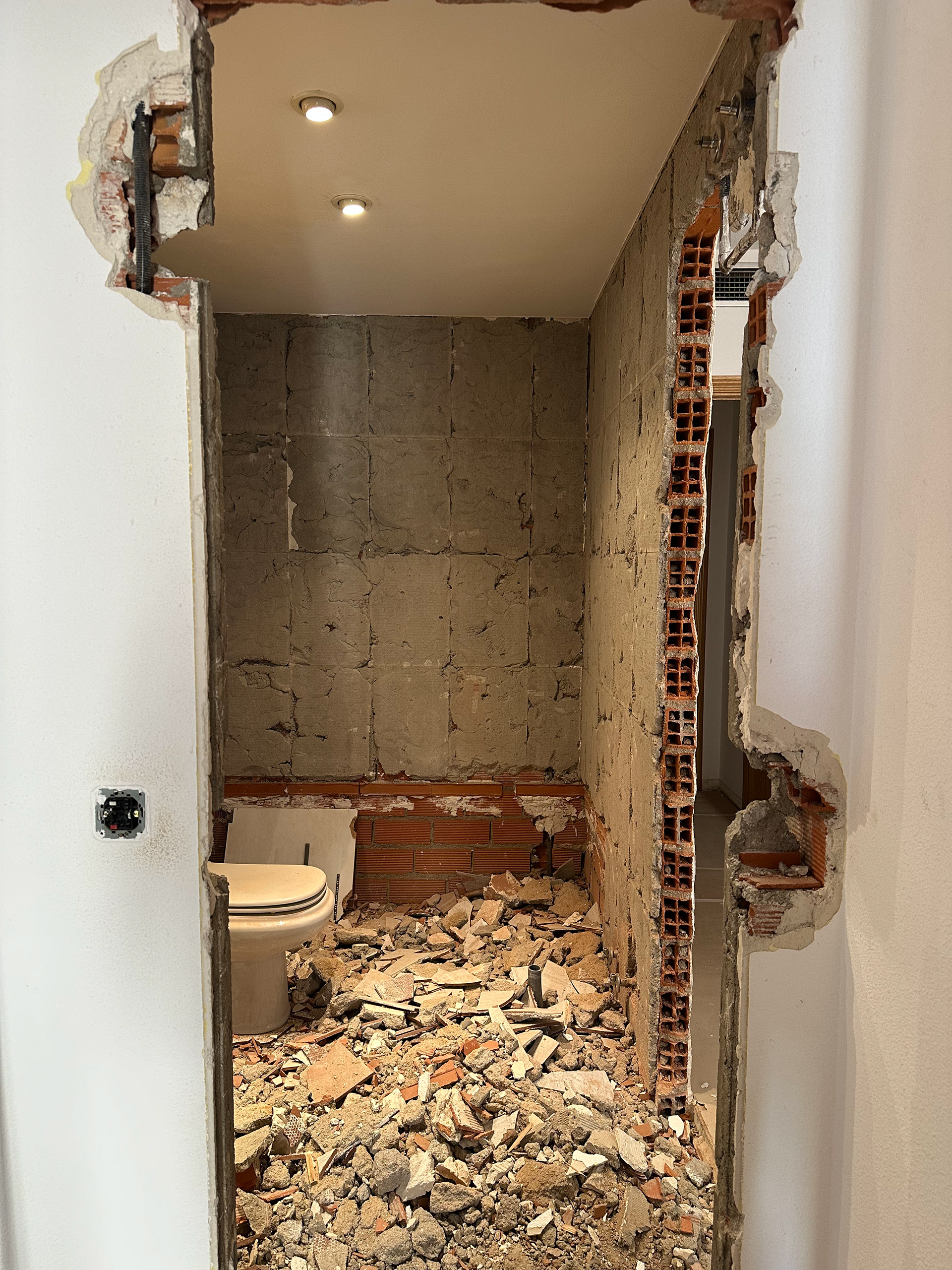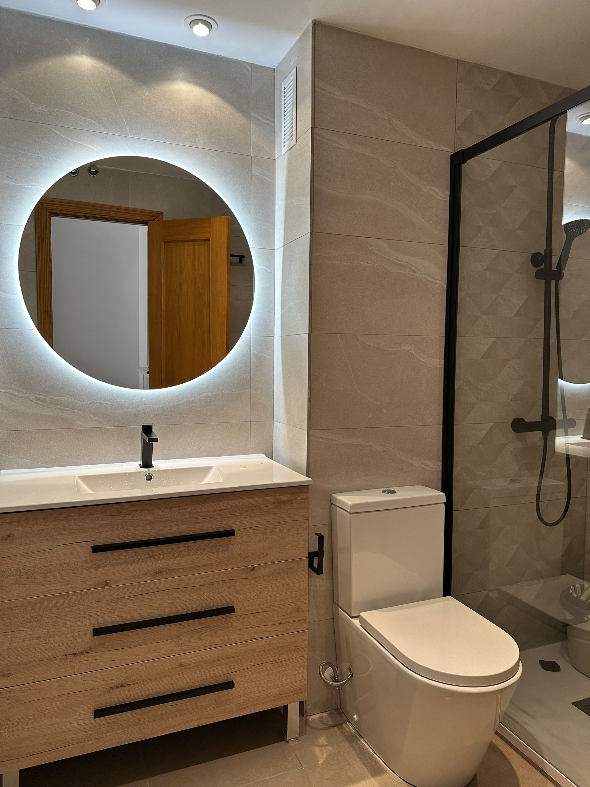 Una reforma funcional, rápida y muy luminosa ✨ El baño necesitaba un actualización, y este fue el resultado final, cambiamos el acceso para optimizar el espacio y aprovechamos para diseñar un armario a medida en el acceso anterior. Además en este piso la transformación se dio en todas las paredes, eliminamos el gotelé para ganar limpieza visual, modificamos la encimera de la cocina y las reemplazamos las carpinterías color chocolate antiguas por unas blancas de PVC.