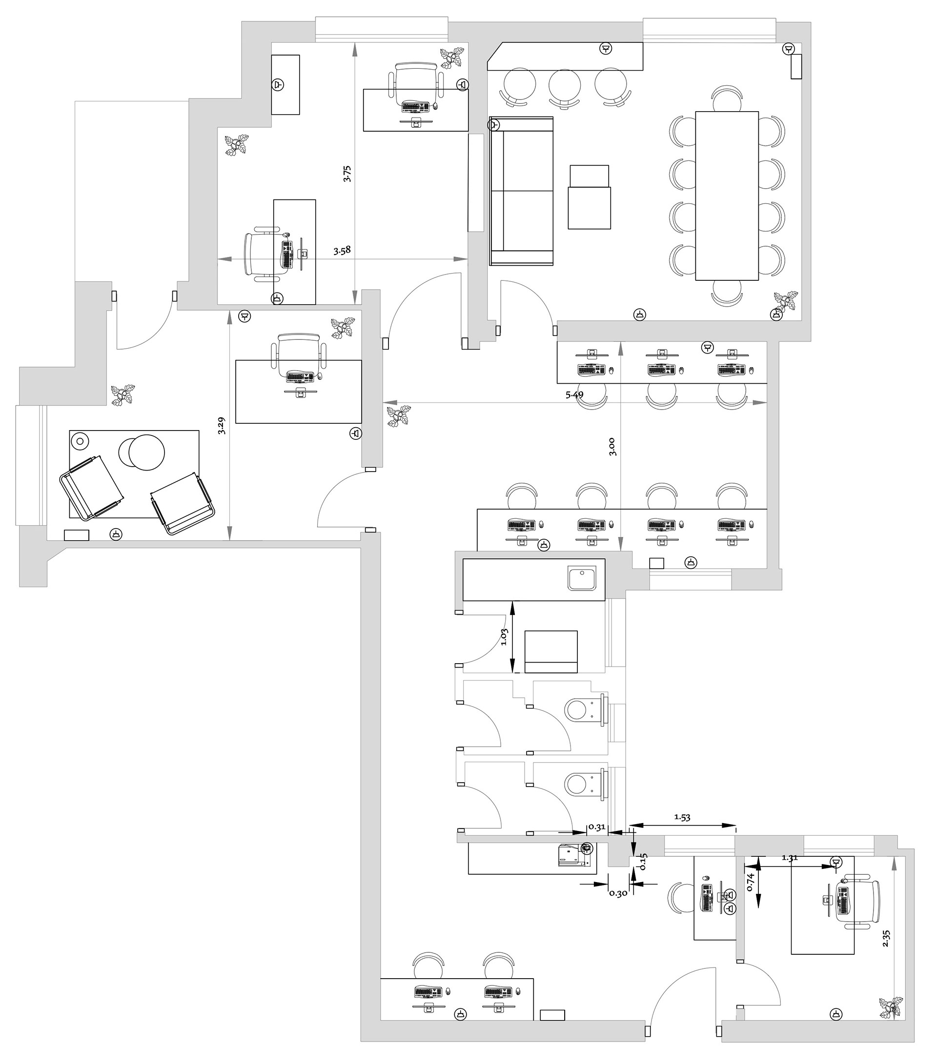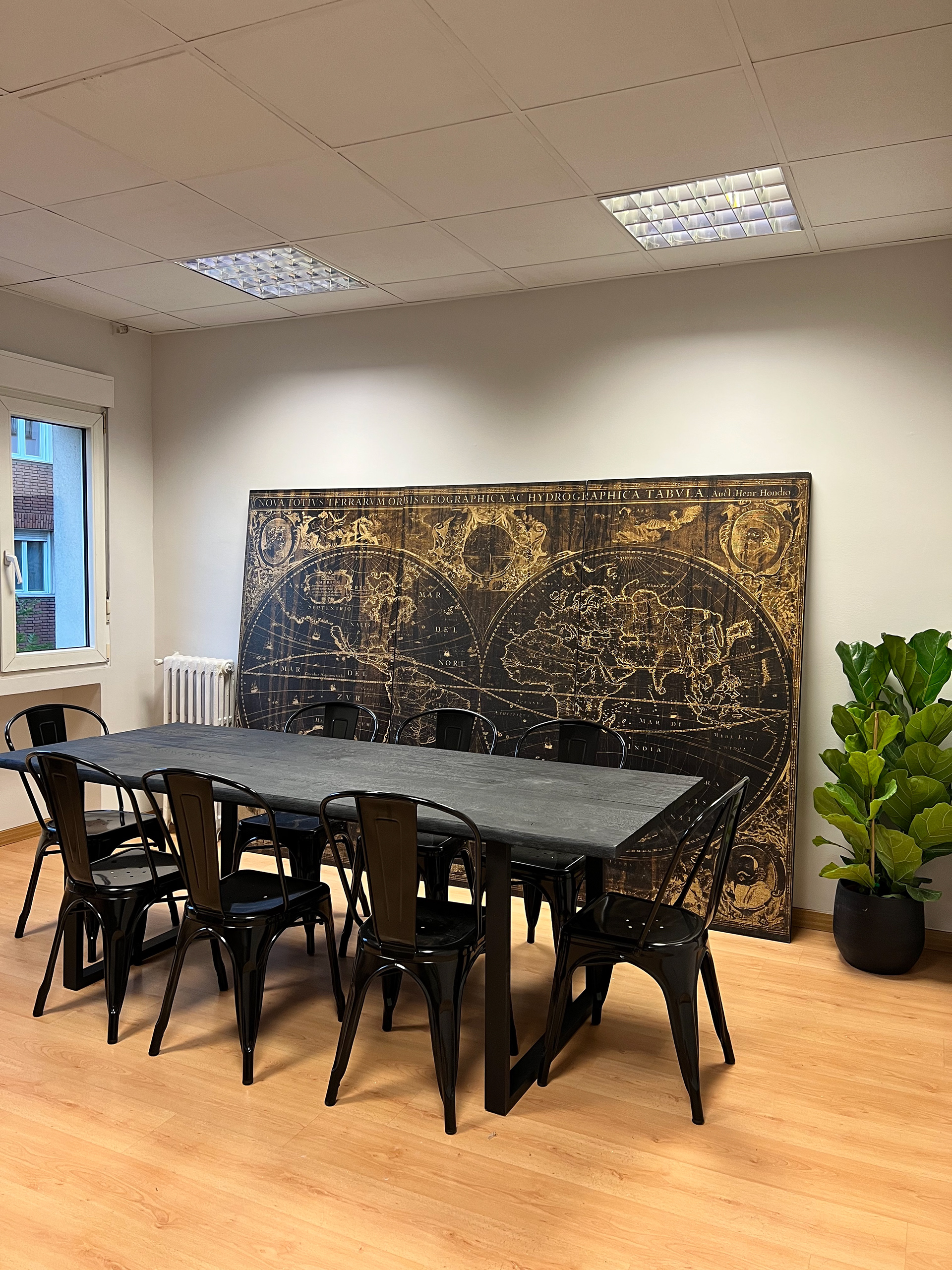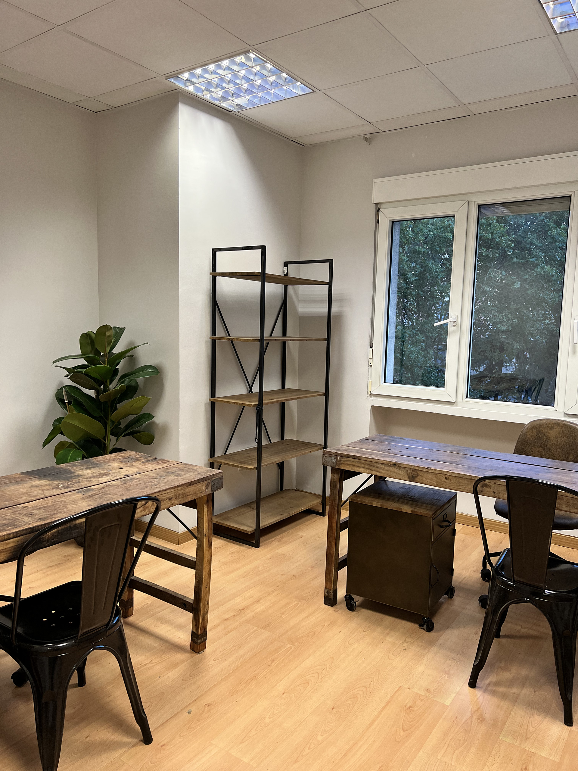 Oficina en la calle Serrano, Madrid. Con un estilo industrial/vintage, el objetivo fue lograr 3 despachos gerenciales con privacidad, 14 puestos de trabajo, y una sala de reuniones Trabajo realizado en el estudio JUUBRN